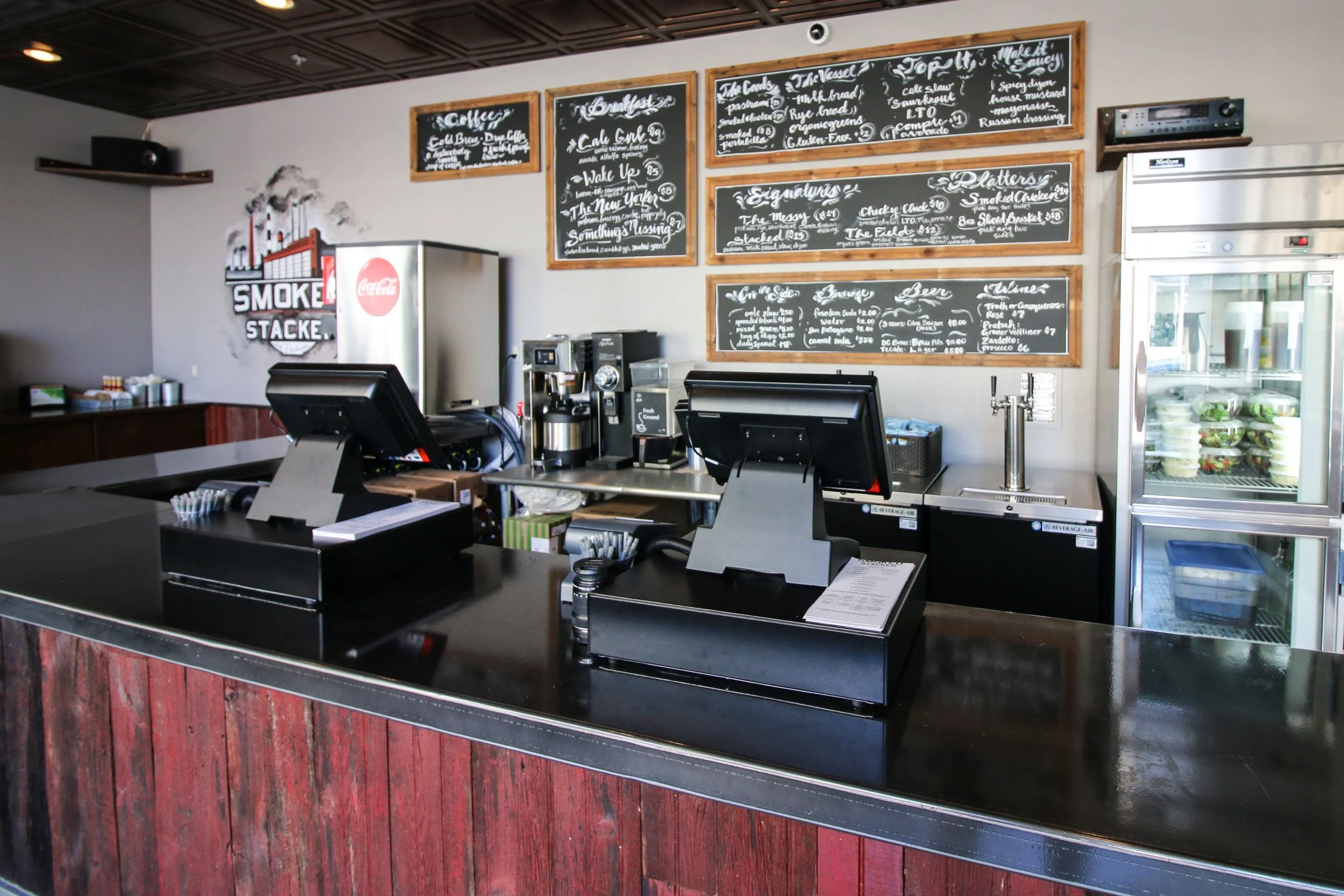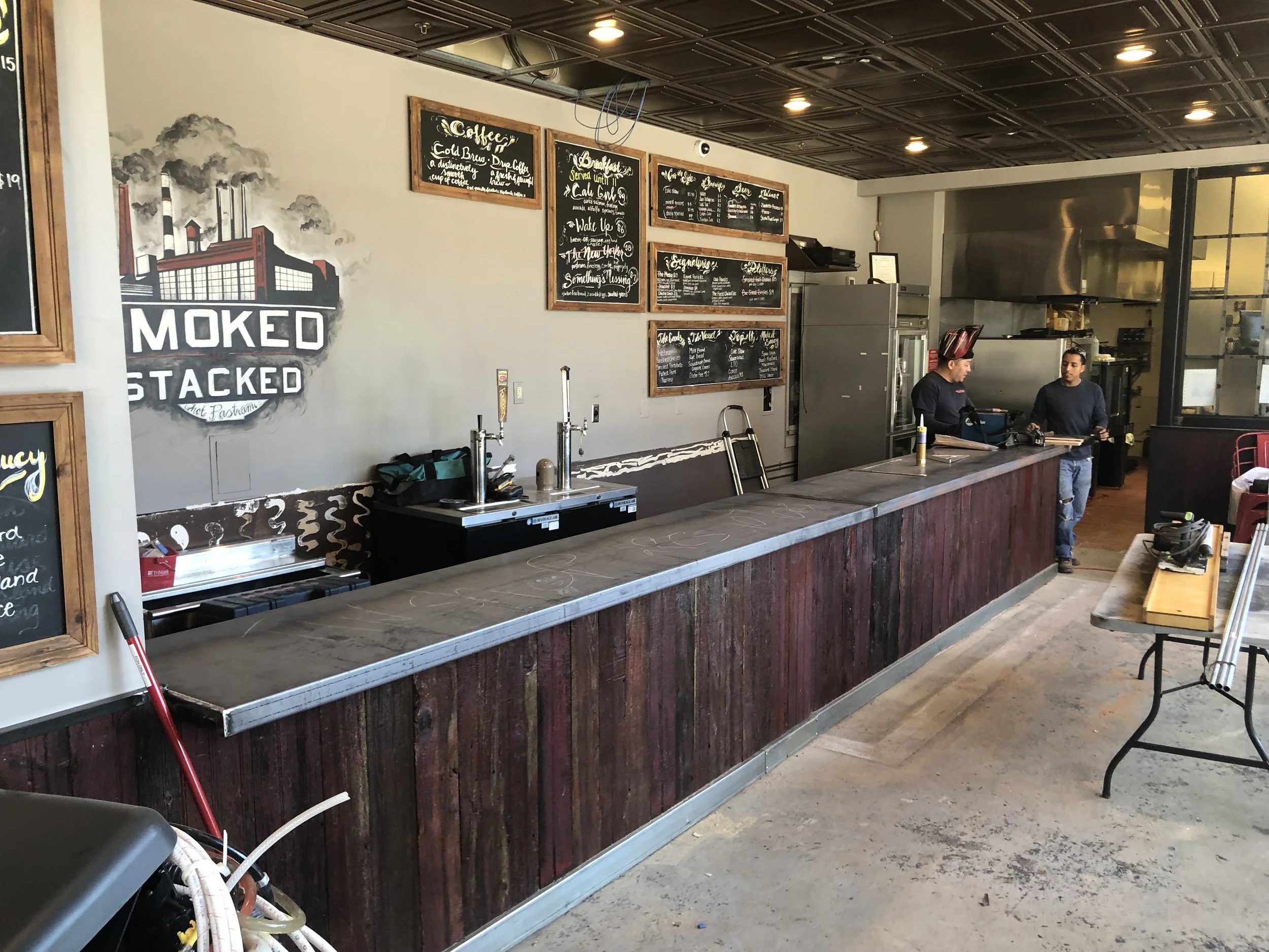 Geoff McNabola, Edgar Martinez and Chris Bebell led the charge to give Smoked & Stacked an industrial feel. Billy Colbert created the logo, capturing the vibe we wanted and prompting more thane person to say “Smoked & Stacked… I thought it was going to be a weed shop.” Our location inside the DC Convention Center was facing 9th St NW, just across from Lost & Found.