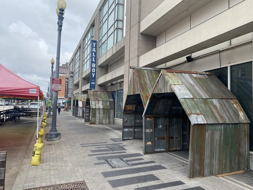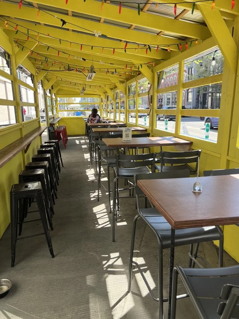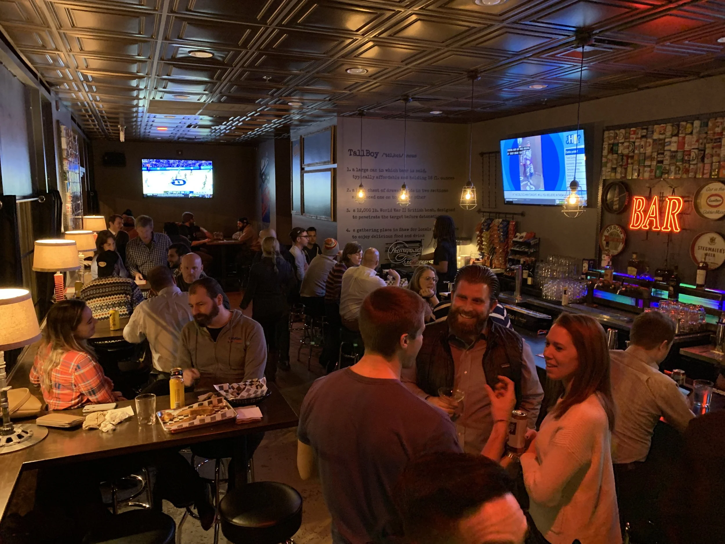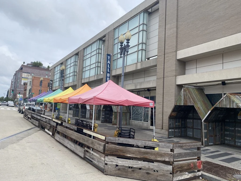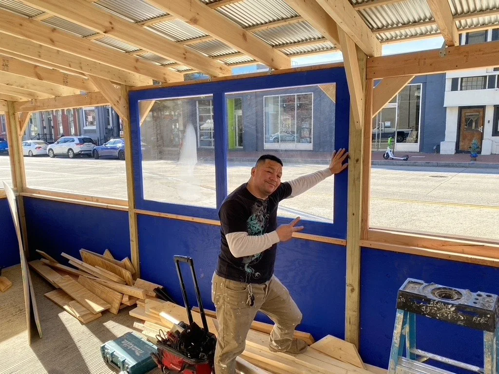 The huge sidwalk became our next playground when the pandemic hit. We built tin huts from salvaged metal from other bar-builds, creating some cool hideouts in Shaw, our DC naighborhoood. These Shaw Shacks were popular during the days of distancing, or is it the daze? Our landlord, the DC Convention Center didnt love the rustic look, so as the word opened up again, we went with picnic tables. We also dismantled our heated outdoor streetery and created a musch more welcoming face to 9th St. Tallboy keeps on keeping on.